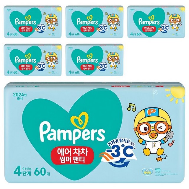 팸퍼스 NEW 엔젤 에어차차 축축함제로 여름팬티 썸머기저귀 4단계 60매입 3팩