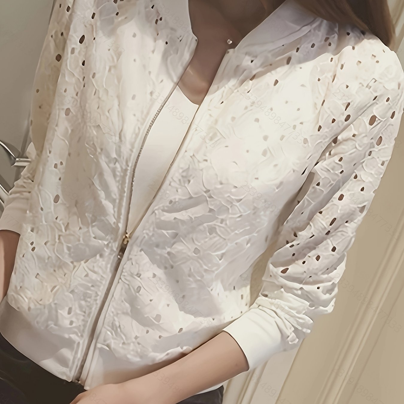TEMU 여름철에 적합한 가벼운 레이스 가디건, 긴 소매와 크롭 디자인으로 여성용 재킷으로 완벽합니다.
