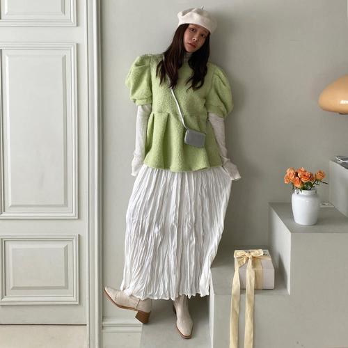 [옷자락] 여자 퍼프 플레어 부클 반팔 블라우스