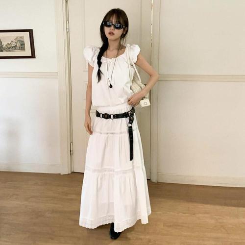 [다잇템]여자 여름하객룩 셔링 퍼프반팔 흰색 블라우스