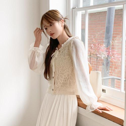 클리지 DP01 펀칭긴팔 레이스 블라우스 CP3WBL07