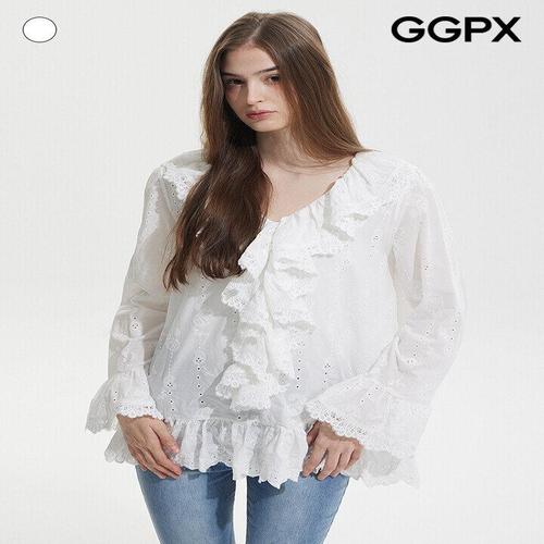 [르샵]로맨틱 펀칭 레이스 러플 블라우스 (GQ3SH053F)