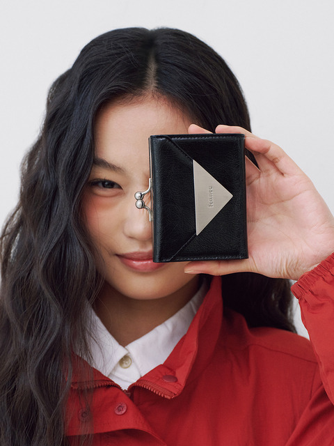 [페넥] CRINKLE TRIANGLE FRAME WALLET - BLACK