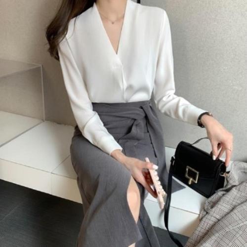 [다잇템]여성용 V넥 롱슬리브 출근룩 캐쥬얼 블라우스