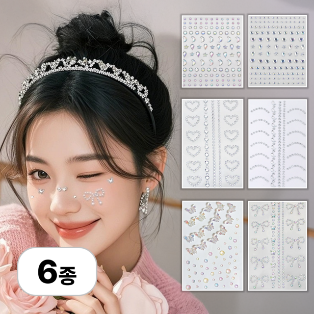 (18종) 오로라 페이스 스티커 파츠 큐빅 얼굴에붙이는 나비 리본 얼굴 페스티벌 축제 할로윈 메이크업