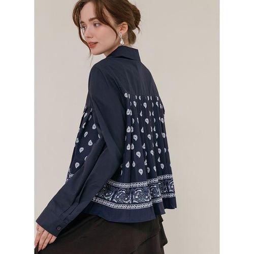 [막스까르띠지오]플리츠 페이즐리 배색 셔츠 블라우스