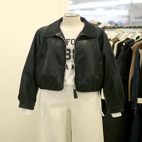 라티움 HC34 스텐카라 배색처리 숏 짧은 레더 페이크 가죽점퍼 T2553Jp08
