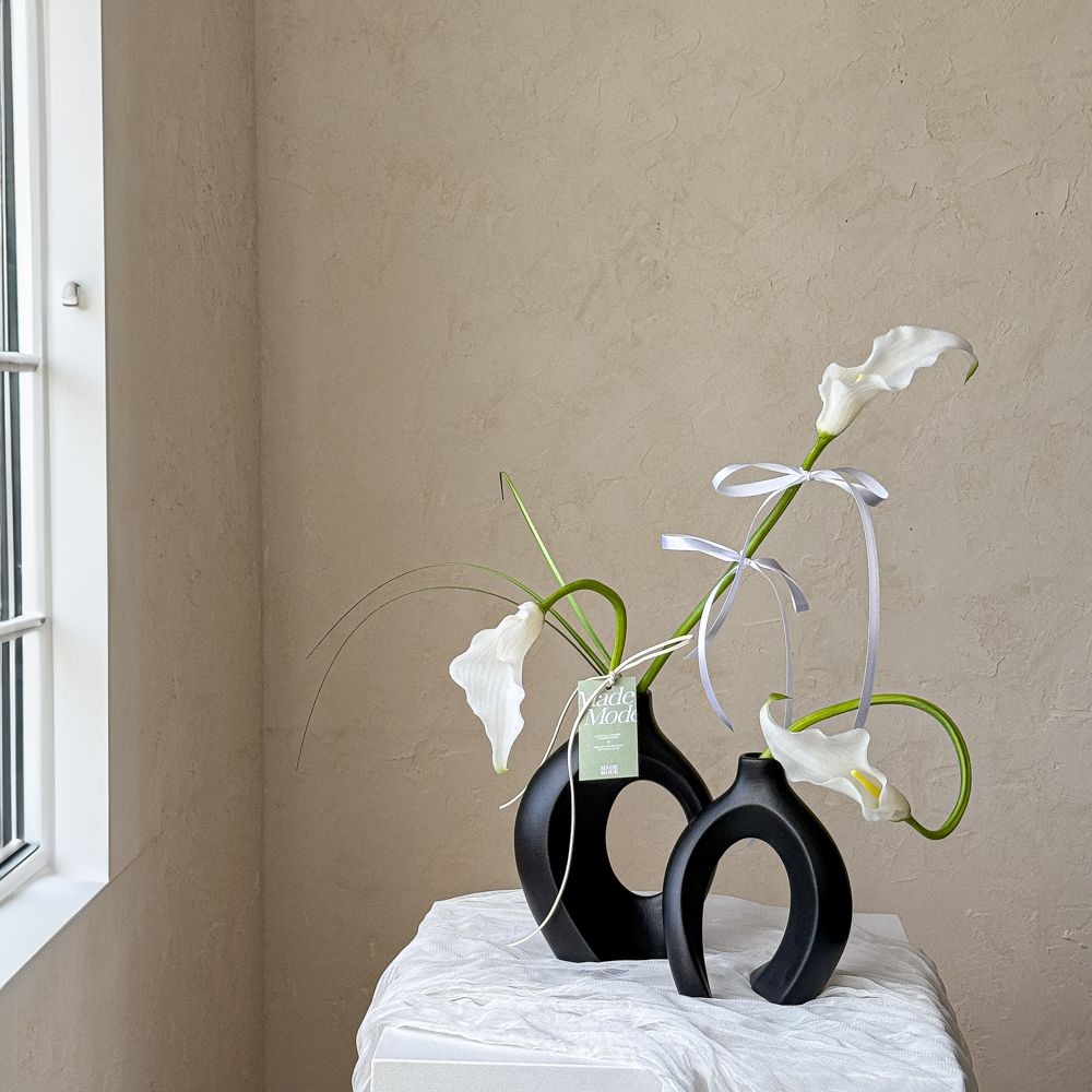실크플라워 조화+화병세트 리본 카라 그라스 조화 블랙 화병세트