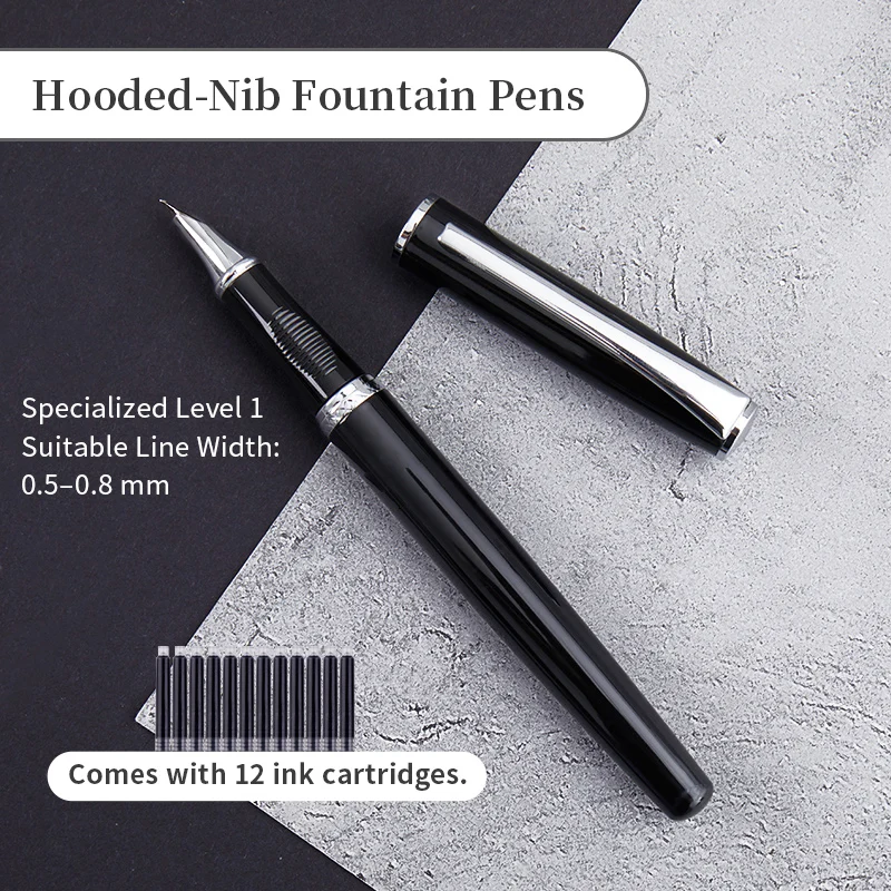 12개의 잉크 카트리지가 포함된 부드러운 플렉스 닙 캘리그래피 만년필 – 예술, 글쓰기 및 캘리그래피에 적합