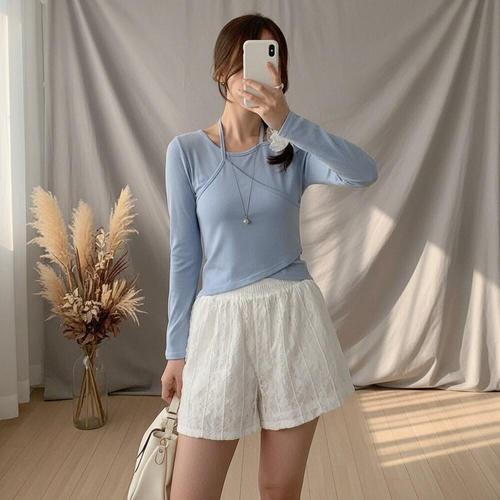 [다잇템]여성 편한 언밸런스 코디 롱슬리브 티셔츠