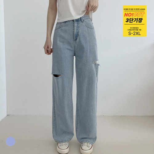 포인 / 빈티지 컷팅 와이드 데님 팬츠 3단기장