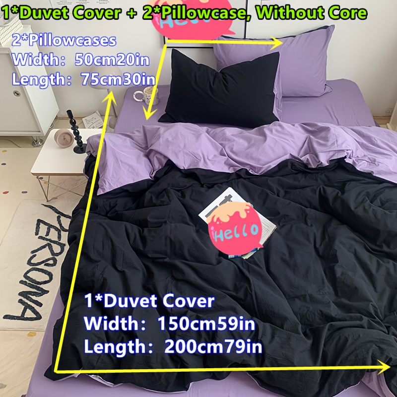 TEMU 3pcs 단색 부드럽고 피부 친화적인 이불 커버 세트 (이불 커버 1개, 베갯잇 2개 포함). 가정 침실에 이상적이며, 저렴하고 고품질 세트로, 대형, 더블, 엑스트라 라지 사이즈로 제공됩니다.