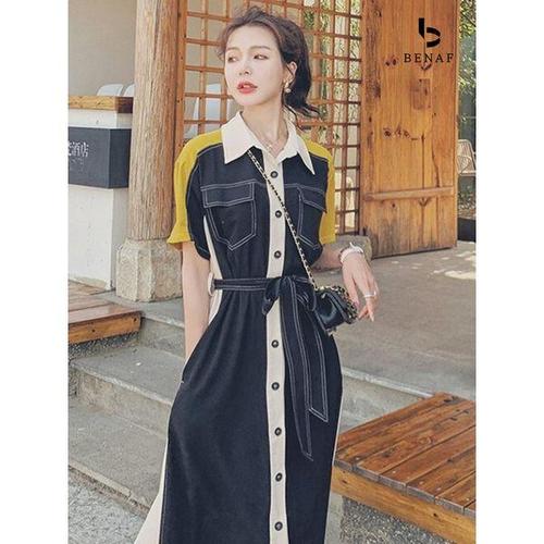 [베나프]아크 배색 빅포켓 반팔 셔츠 원피스_BF2OP042
