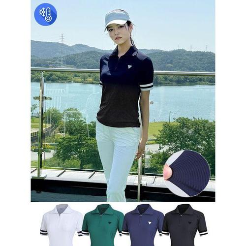 [와이드앵글](하남점)여성 펀칭 믹스 집업 폴로 반팔 티셔츠(WWM24231)