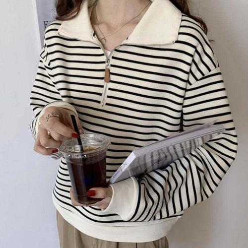 [셀럽하우스]여성 ESJD1935 단가라 반집업 폴로 스웨트 스트라이프 면집업