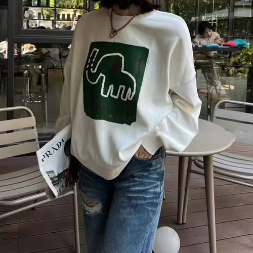 슈팅스타 / 루즈핏 캐주얼 코끼리 프린팅 베이직 맨투맨 245346