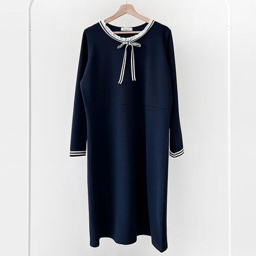 [다잇템] 여성 네이비 리본 프릴카라 대형 롱드레스