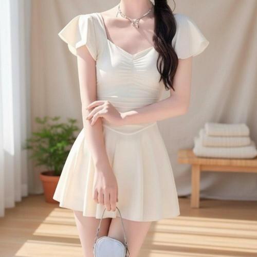여자 하트넥 셔링 프릴 스커트 원피스 수영복
