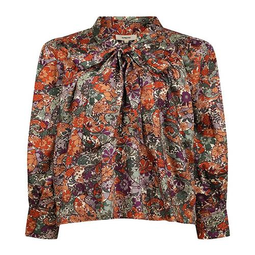[썬쿠][썬쿠] 플라워 패턴 셔링 타이 블라우스(RE71B9BLS07V)
