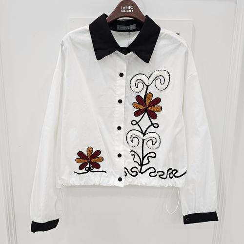 [넬리]에노 플라워 자수 코튼 셔츠_ND2BL002