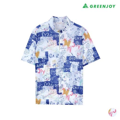 [그린조이]여성 레터링 프린트 반팔 반지퍼 폴라 티셔츠