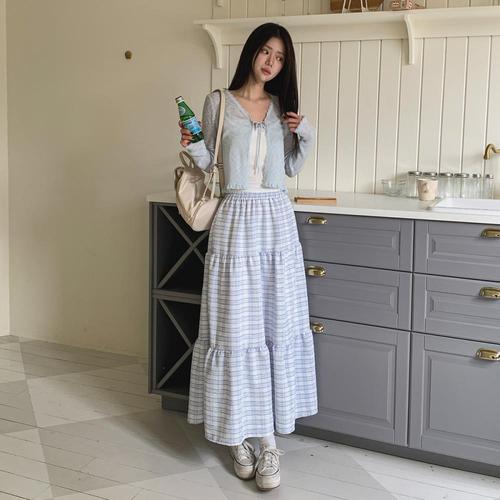 [옷자락]여성 체크 자연스러운 데일리룩 플레어 스커트