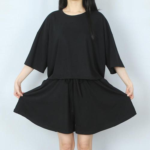 [파라노말샵](투피스) 4색 와이드 반팔 크롭티 플레어 치마 바지
