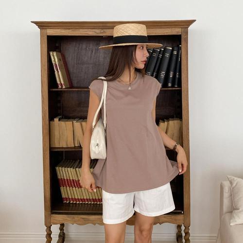 [옷자락] 여자 라운드넥 A라인 플레어 무지 민소매 티셔츠