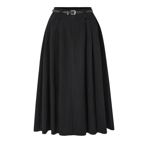 네모엔룩 롱핀턱플리츠 여성용 허리핀턱 주름A라인 벨트세트 롱 스커트. 스커트+벨트 총 2종