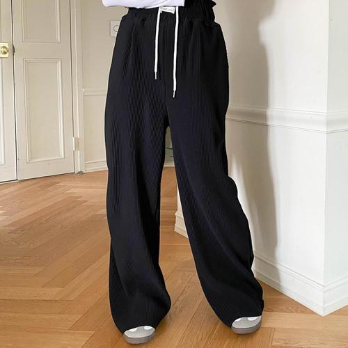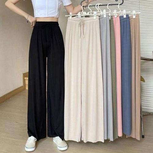 [비비드글램]뱀부 플리츠 와이드 팬츠 리본 밴딩 바지 찰랑한 홈웨어