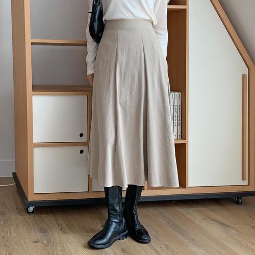 [옷자락] 여자 캐주얼 반플리츠 뒷밴딩 롱스커트