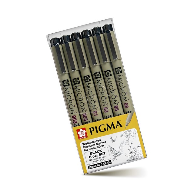 사쿠라 피그마 마이크론 블랙 6본 세트 피그먼트펜 일러스트 제도 드로잉 펜