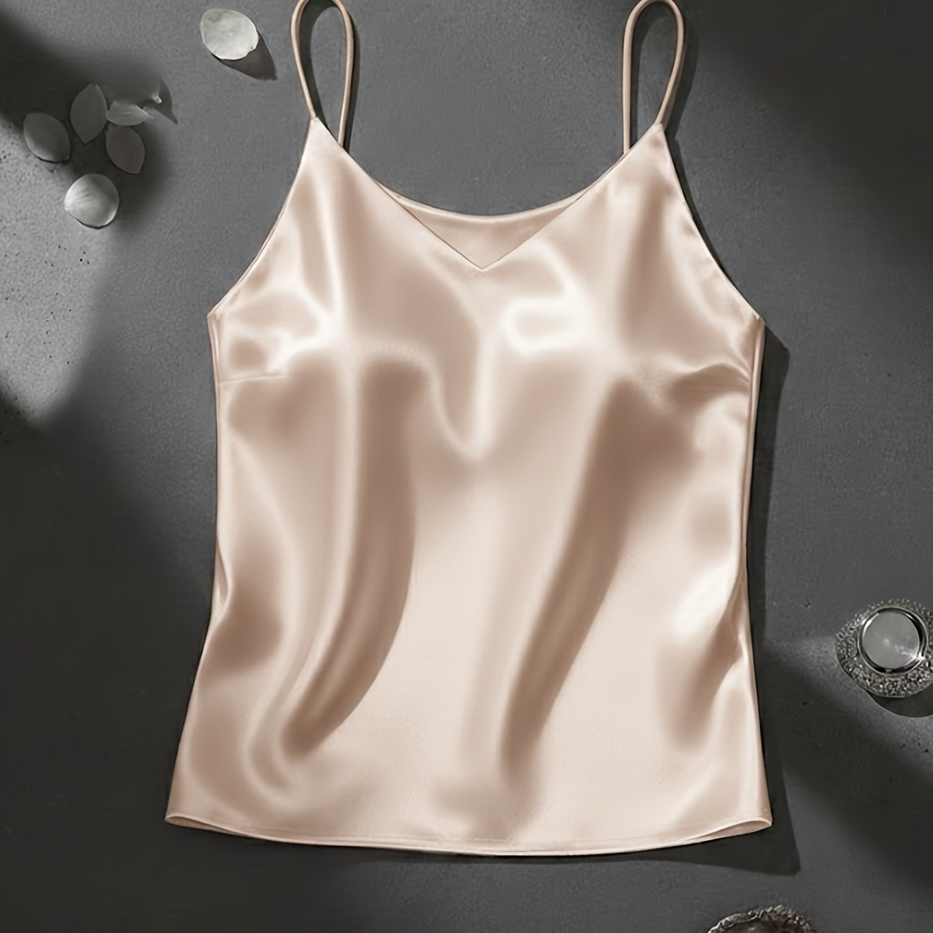 TEMU 1개 우아한 솔리드 컬러 새틴 여성용 속옷 탑 - 섹시한 얇은 스트랩 디자인, 풀 커버리지, 매끄러운 광택 표면, 여름 착용에 적합, 다용도 얇은 스트랩 스타일 | 패셔너블한 얇은 스트랩 | 반짝이는 새틴