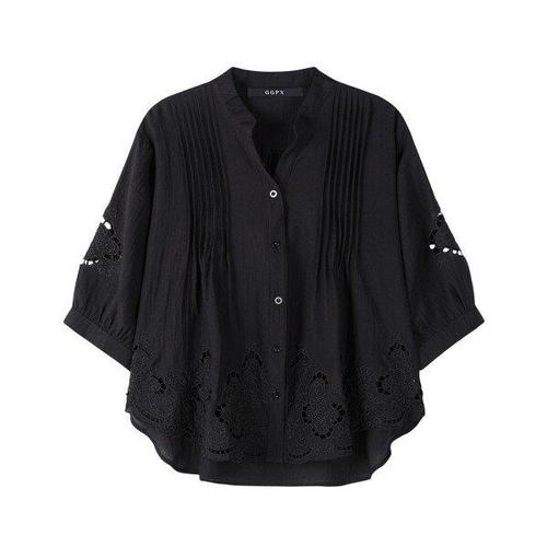 [GGPX]플라워 펀칭 트임넥 루즈핏 핀턱 블라우스 (GOBBA015D)