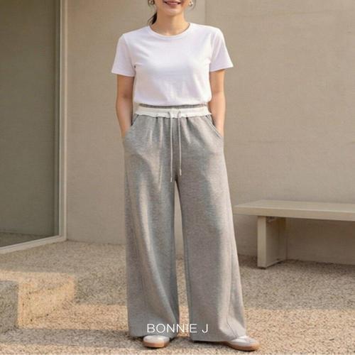 [보니제이]허리 프릴 밴딩 센터핀턱 와이드 트레이닝 롱팬츠 끈