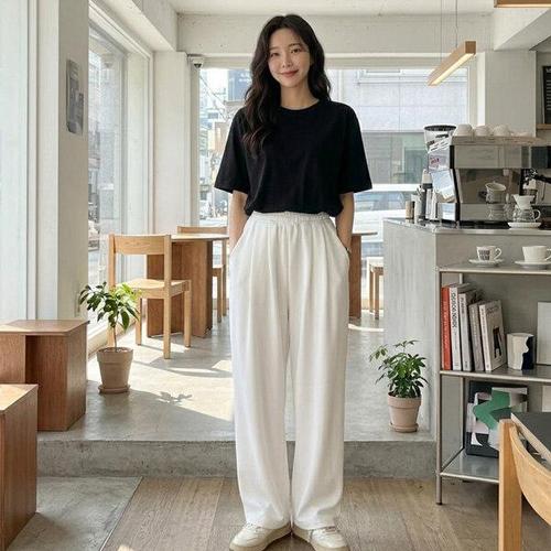 [옷자락] 여성 핀턱 조거팬츠 투웨이 밴딩 일자핏 트레이닝바지
