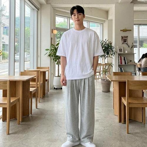 [보슈아]남성 핀턱 와이드 트레이닝 팬츠 밴딩 루즈핏 하체커버 데일리 sado 2012M