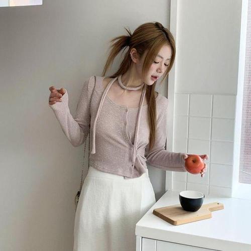 [신상오픈런]여성 슬림핏 골지 크롭 브이넥 롱슬리브 니트 가디건