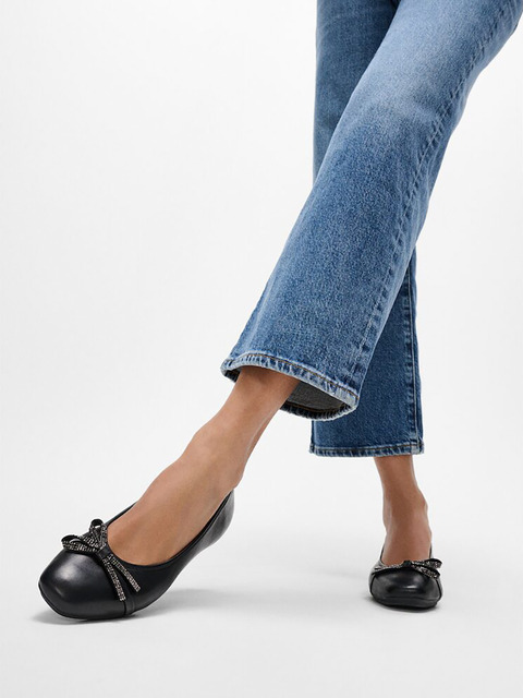 [핏플랍] [삼성물산공식] [델리카토] 여성 글리츠 리본 레더 발레리나 플랫슈즈 - 블랙 (FT59K2M025)