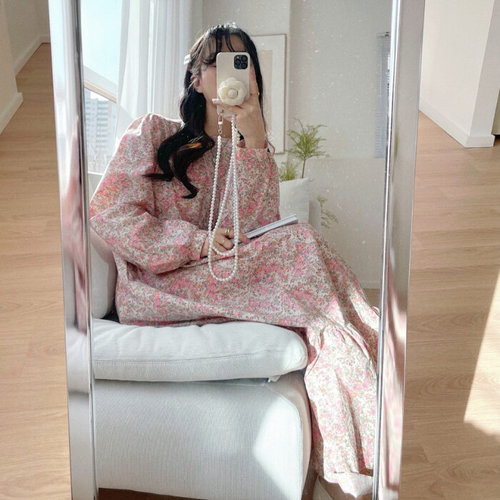 [오너클랜]인기상품 플라워 패턴 여성용 롱 드레스 핑크 카라 스타일 [WFLL965_260304]