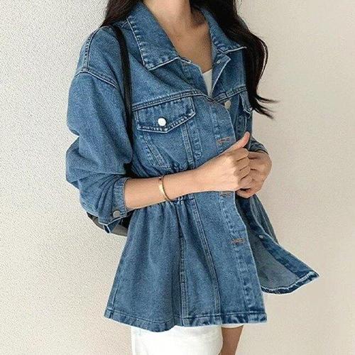 [핑크엘리제]캐주얼 허리셔링 슬림핏 케노리아데님자켓
