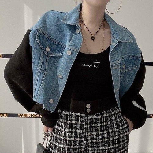 [핑크엘리제]캐주얼 배색 크롭자켓 펜시브데님자켓