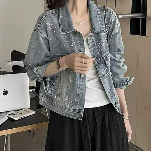 26 SS 블루마린 여성 화이트 핑크 라인스톤 핀 데님 재킷 251901F060000