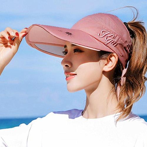 휴대용 선캡 말아지는 자외선차단 와이드 챙모자 핑크