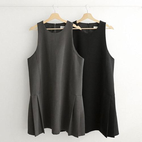 [옷자락]여성 하객 패션 플리츠 A라인 빅사이즈 민소매 미니 드레스