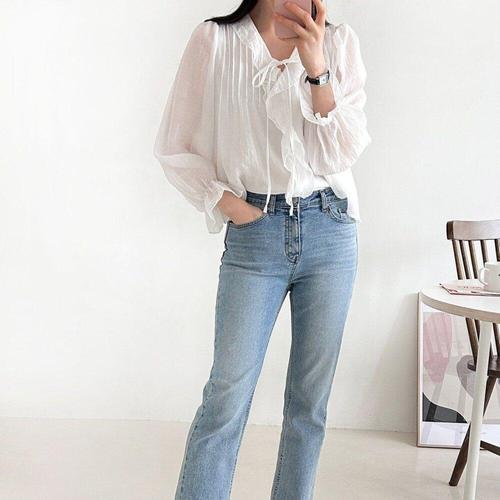 [옷자락]여성 봄 하객 패션 핀턱 러플 프릴 퍼프 리본 블라우스