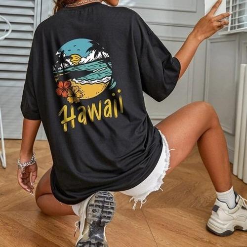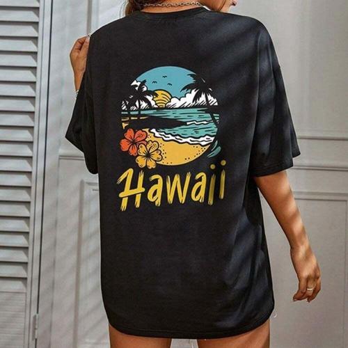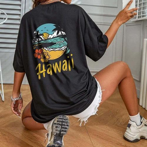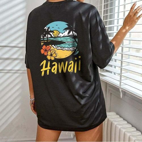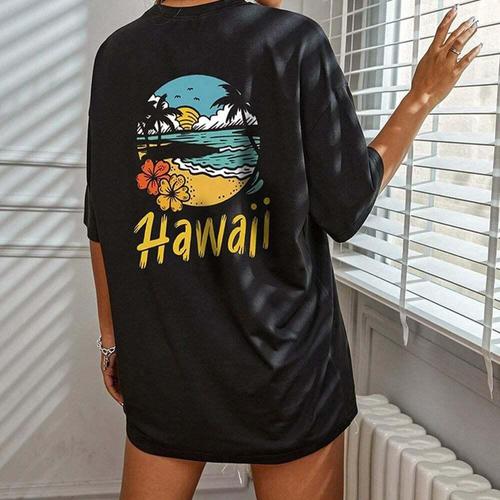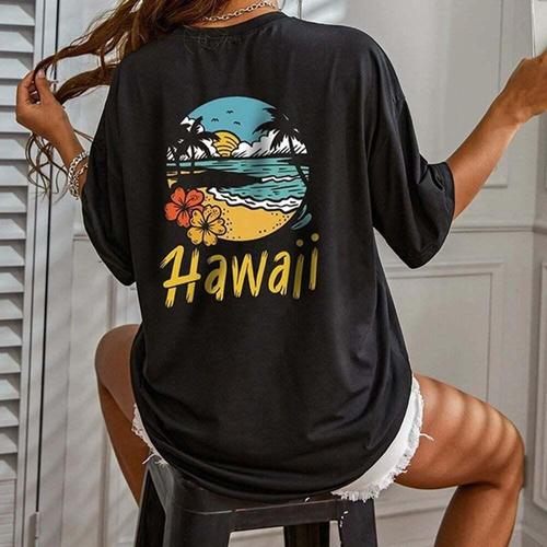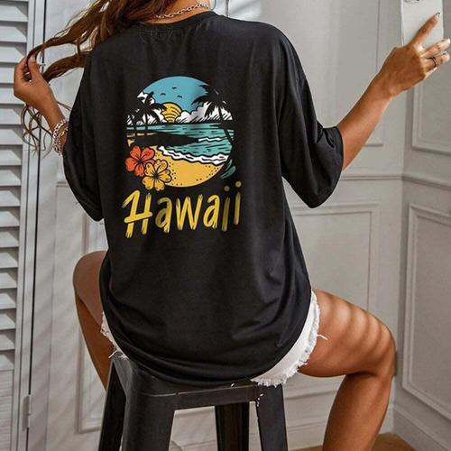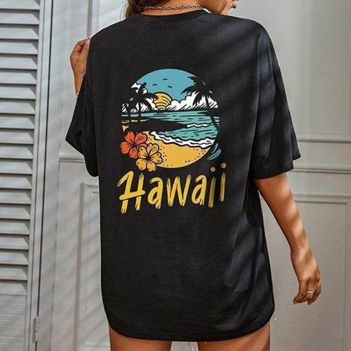 [셀럽하우스]하와이 QINM7763 프린팅 여성 데일리 오버핏 여름 박스 티셔츠