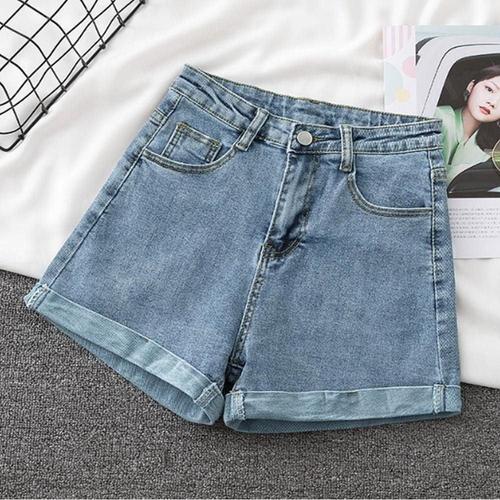 청 여름 하이웨스트 핫팬츠 청반바지 A라인 반바지 빅사이즈 여자청반바지 배모양 몸매가 원템2