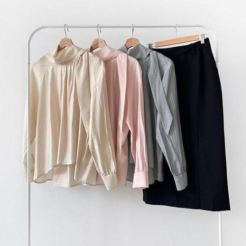 [옷자락] 여자 타이넥 하이넥 루즈핏 기본 데일리 블라우스