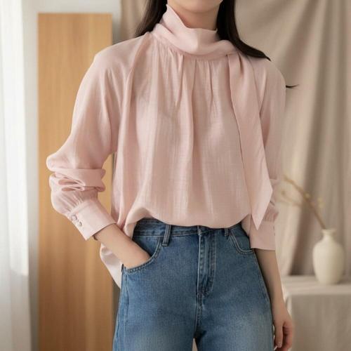 [옷자락]여성 타이넥 하이넥 루즈핏 기본 일상용 블라우스